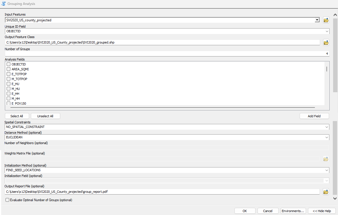 In ArcGIS there are robust clustering tools that utilizes several algorithms. For the demonstration we will use the Grouping Analysis tool:
