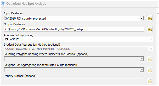 To start, navigate to the Optimized Hot Spot Analysis tool: